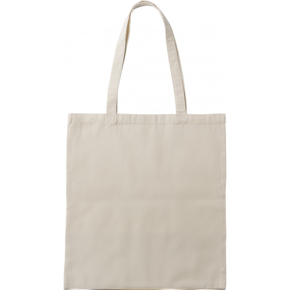 Pamut bevásárlótáska hosszú füllel, műjuta alsó résszel. 160g/m2, 100% pamut.