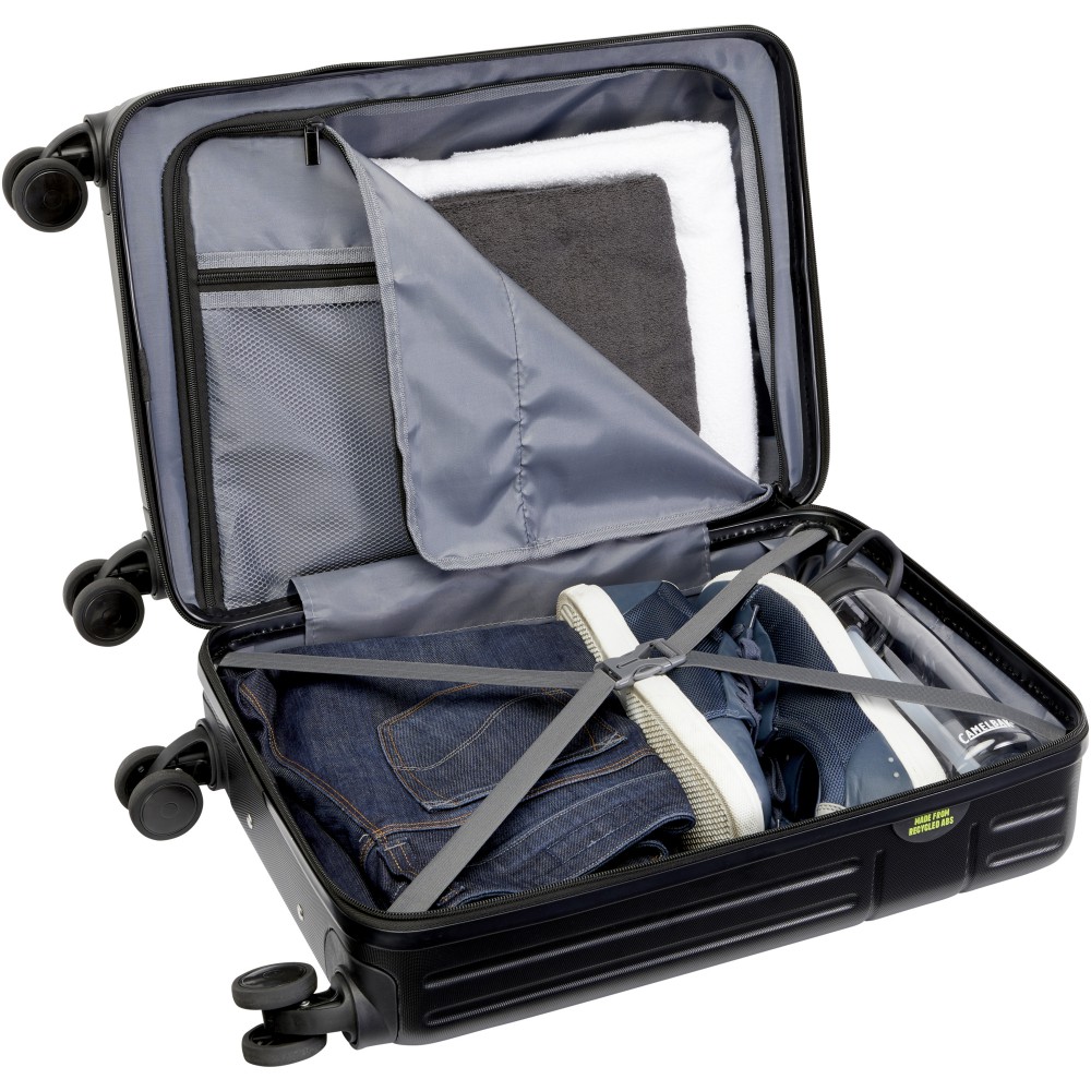 Ütésálló újrahasznosított műanyagból, RPET béléssel készült 20?-os Rover kabinbőrönd a fenntarthatóságot éppúgy képviseli, mint a minőséget. Duplacsöves alumínium vázzal, 360 fokos kerekekkel, integrált TSA zárral, kényelmes fogantyúval és belső elválasztó rekeszekkel rendelkezik. A legtöbb légitársaságnál kézipoggyászként szállítható. A bőrönd GRS-tanúsítvánnyal rendelkezik. Újrahasznosított ABS.