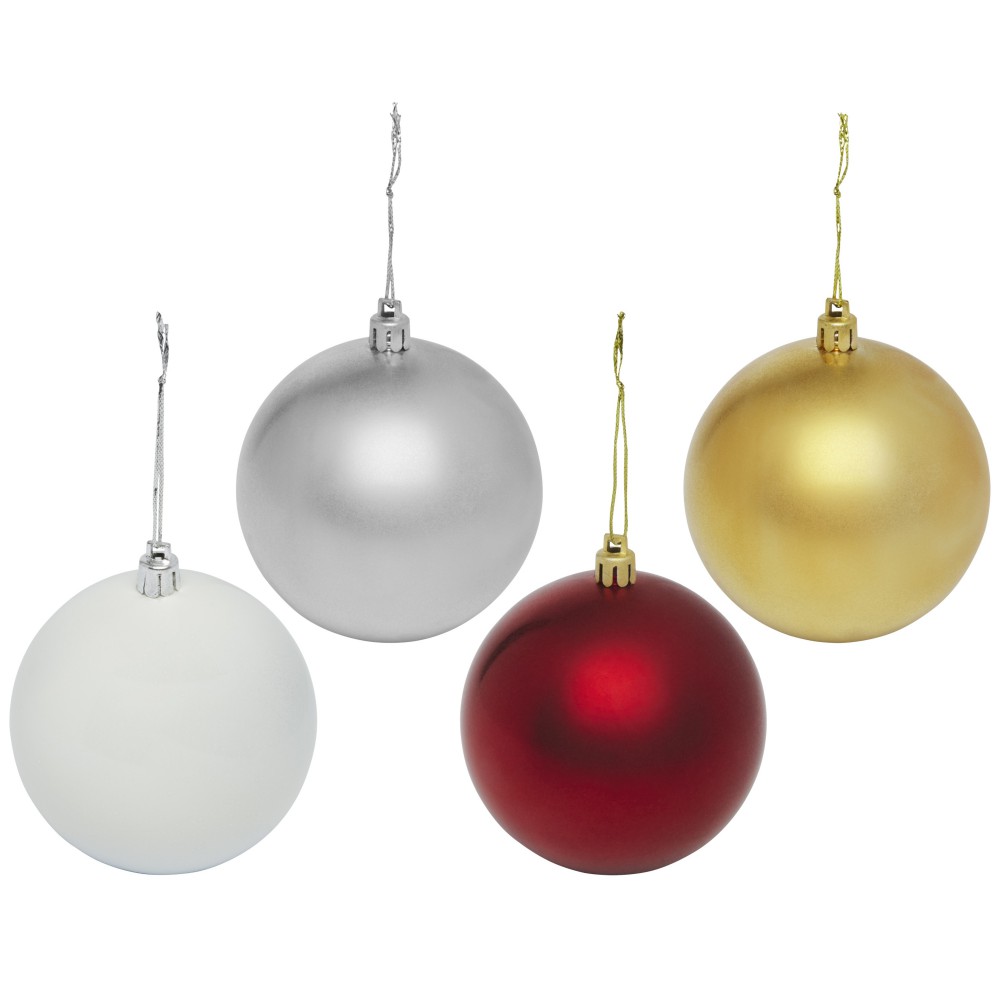 Karácsonyfadísz fényes bevonattal. Csomagolása egyenként ablakos kraft dobozban.