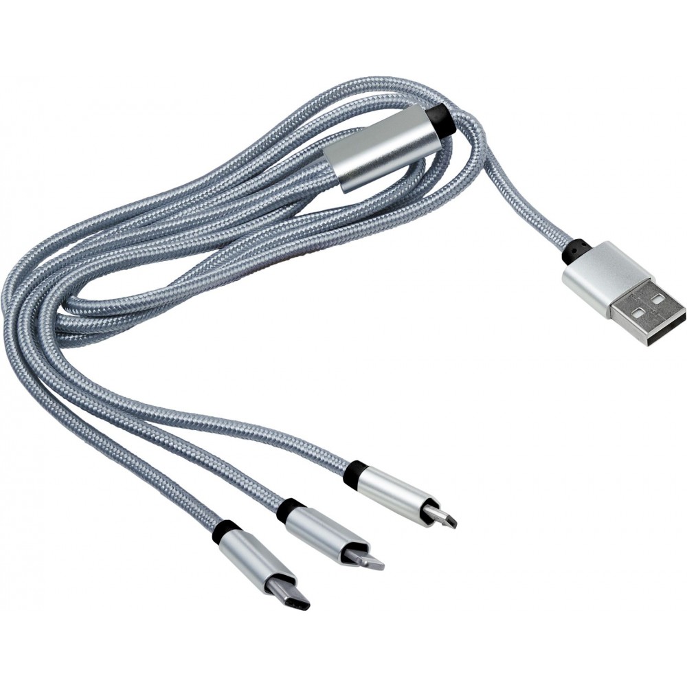 Töltőkábel többféle csatlakozóval, ezüst