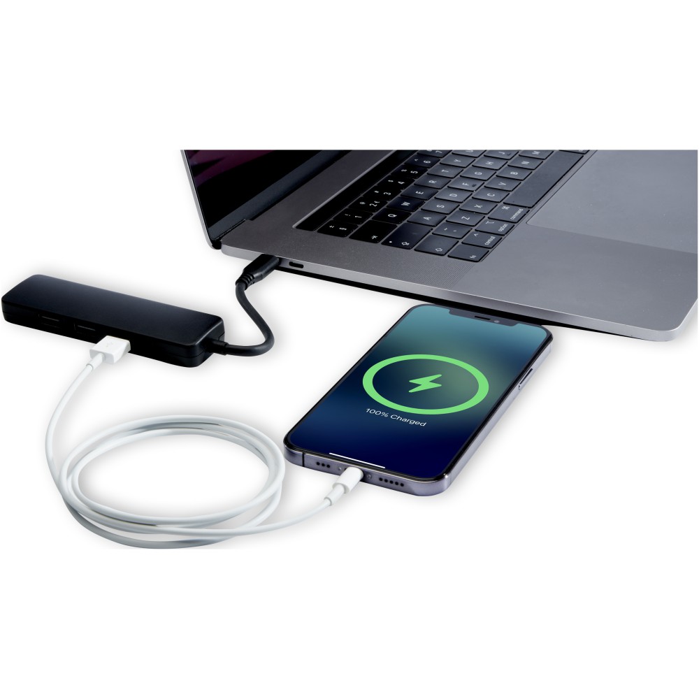 A Loop RCS újrahasznosított műanyag Type-C adapter a különböző portoknak köszönhetően minden kihívásra megoldást kínál. Csatlakoztass egeret és billentyűzetet a dupla USB 2.0 porthoz, másolj nagyméretű fájlokat nagy sebességgel az USB 3.0 vagy Type-C porton keresztül és/vagy csatlakoztasd laptopod külső monitorhoz/TV-hez/kivetítőhöz a beépített HDMI kimenet segítségével, amely akár 4K felbontást is támogat. Felhasználói kézikönyvvel, 100%-ban újrahasznosított dobozban szállítjuk.