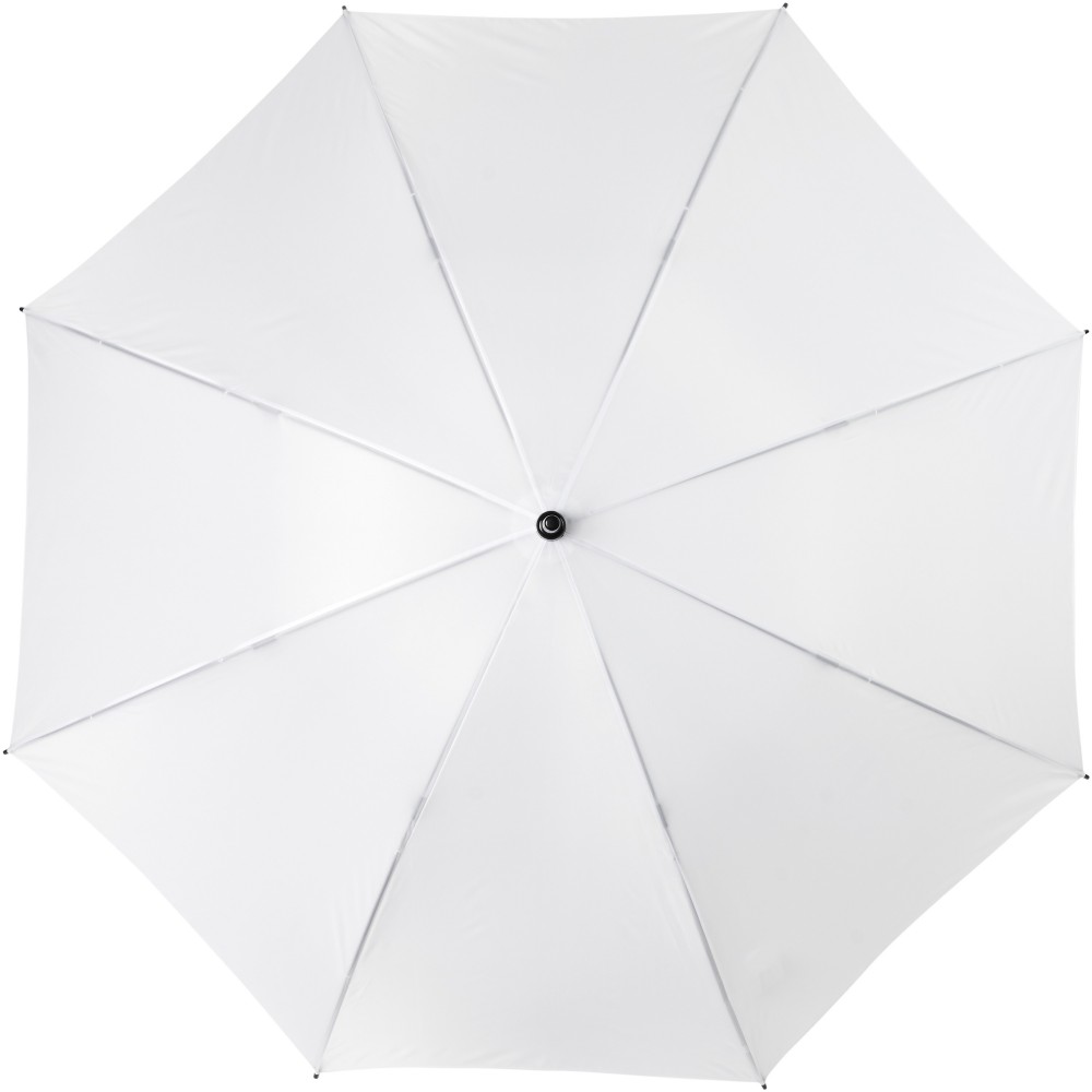 30 -es szélálló, kézi nyitású esernyő fém szerkezettel, üvegszálas vázzal. Nyele íves, EVA borítással. Poliészter.