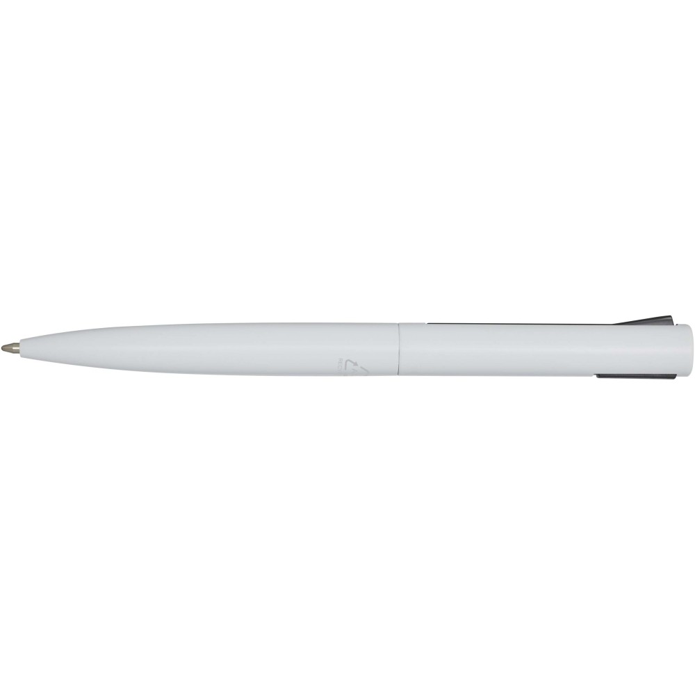Golyóstoll, melynek felső teste újrahasznosított műanyagból, alsó része pedig újrahasznosított alumíniumból készült. A klipsz vasból készült. Kék tollbetéttel. Írási hossz: 1000 méter. Hegyméret: 1,0 mm.