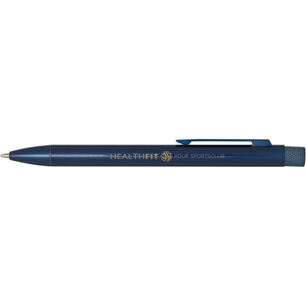Golyóstoll színes festékszórt bevonattal. A gomb és a hegy sárgarézből, a tollteste újrahasznosított sárgarézből, a klipsz pedig vasból készült. Kék tollbetéttel. Írási hossz: 1000 méter. Hegyméret: 1,0 mm. Ajándékdobozban szállítjuk.
