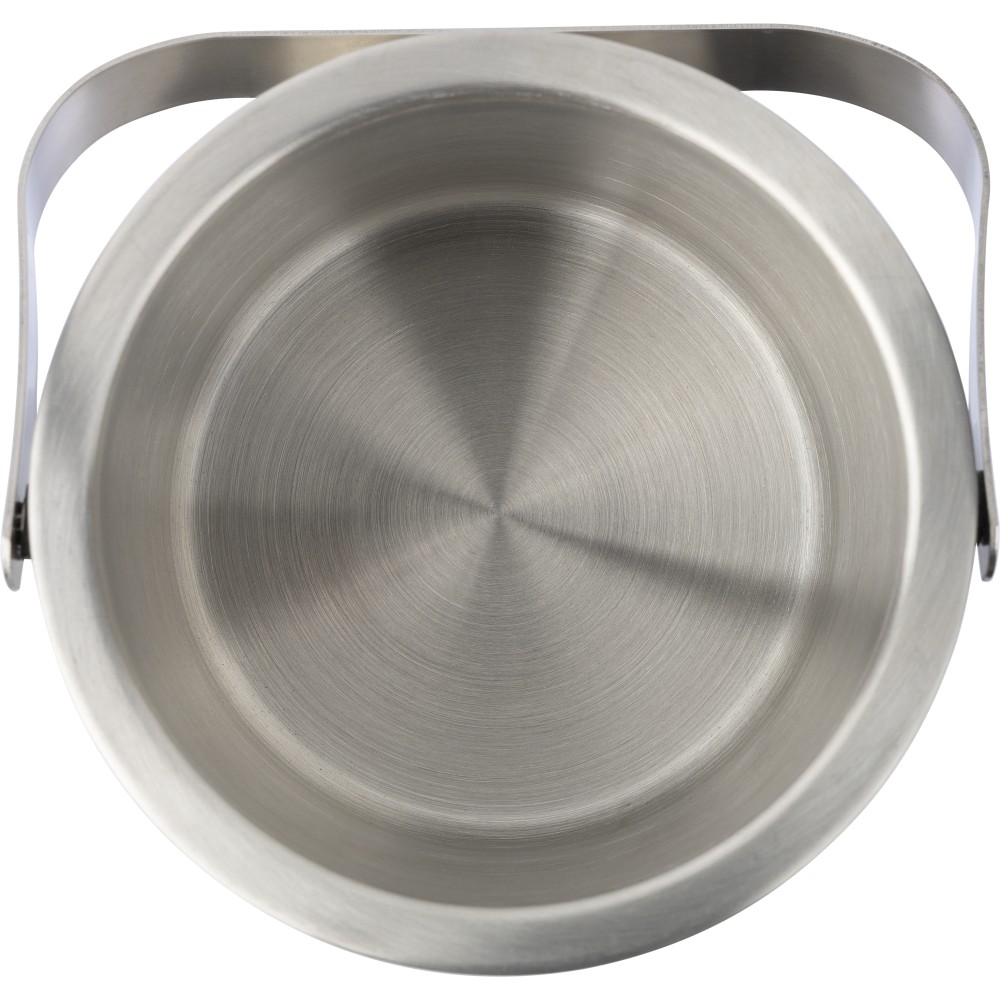 Duplafalú jegesvödör bambuszfedéllel és rozsdamentes acél fogantyúval. A belső 304-es, a külső pedig 201-es rozsdamentes acélból készült. Jégcsipesszel, 1200 ml-es űrtartalommal. Csomagolása barna papírdoboz.