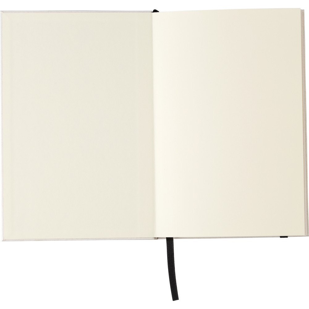 Újrahasznosított tejesdobozból készült A5-ös jegyzetfüzet 80 lappal, gumiszalaggal és könyvjelzővel. 70%-ban újrahasznosított tejeskartonból és 30%-ban újrahasznosított papírból készült. Igazolóbélyegző a füzet hátuljának az alján.