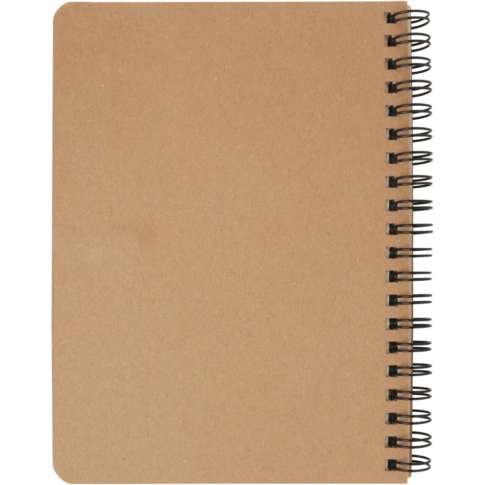 Újrahasznosított papírfedelű jegyzetfüzet 60 db újrahasznosított papírból készült A6-os méretű vonalas lappal, hozzáillő tollal. A toll fekete tollbetétel érkezik és külön van csomagolva.