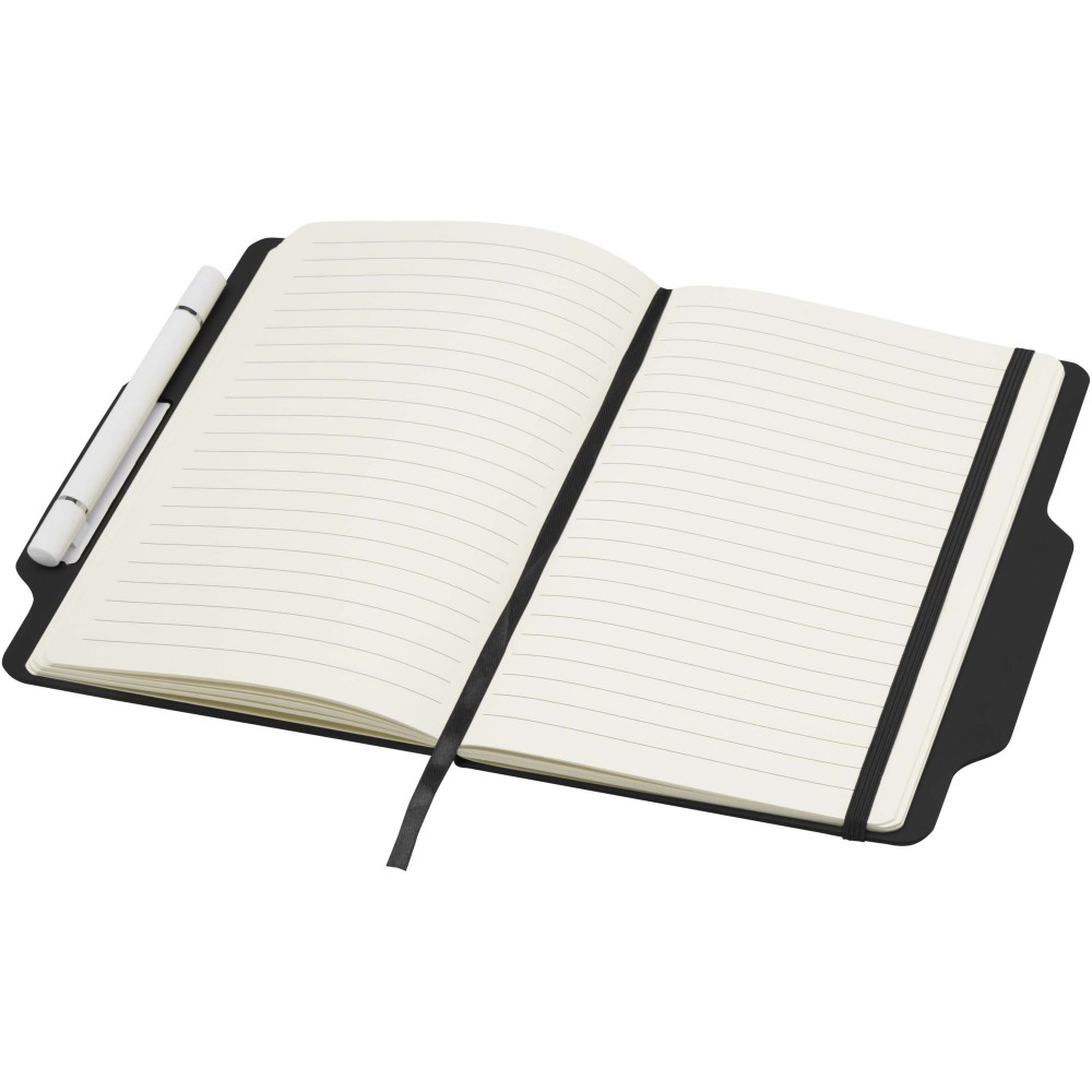 A Nexus A5 keményfedeles jegyzetfüzet egy toll/ceruza kombinációval praktikus és stílusos választás. 80 krém színű, 70 g/m2 vonalas lapot tartalmaz, lekerekített sarkokkal, rugalmas zárópánttal és szalagkönyvjelzővel. A kétvégű toll egyik oldala fekete tintával író golyóstoll, a másik oldala ceruza. A toll íráshossza: 1000 méter. Tollhegy mérete: 1,00 mm.