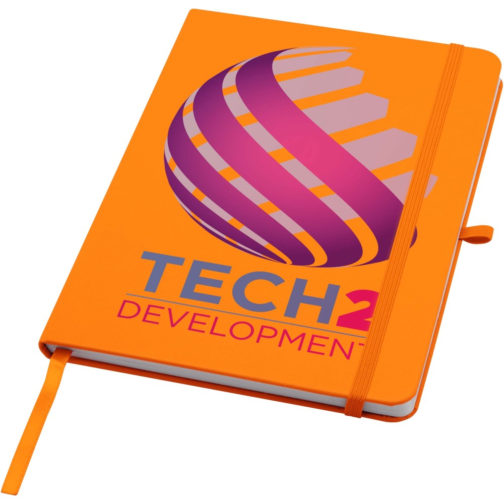 A Teak A5 méretű, újrahasznosított karton keménytáblás jegyzetfüzet lekerekített sarkokkal nemcsak irodai alapdarab, hanem kiváló lehetőség a márka népszerűsítésére is. A jegyzetfüzet 96 darab 70 g/m2-es vonalas lapot tartalmaz és puha tapintású borítóval rendelkezik. Beépített tolltartó hurokkal, rugalmas zárópánttal és könyvjelzővel van ellátva.