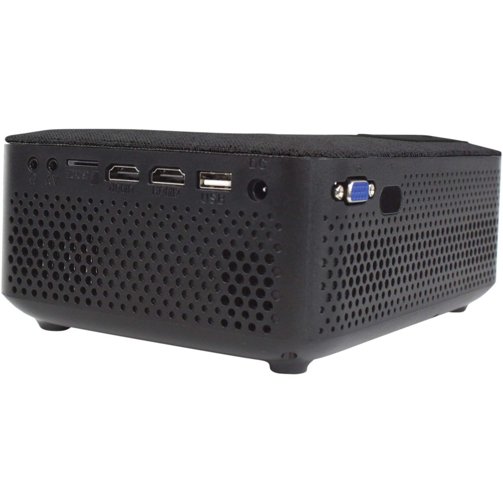 A projektor maximális képminőségben játssza le a filmeket. Támogatja a 1080P FULL HD, 1080i, 720p, 5761, 480p és 480i felbontásokat HDMI-n keresztül. +/- 15 fokos függőleges képjavító rendszer. Távirányító és 2 hangszóró tartozék. Videókat, hanganyagokat, fényképeket és szövegeket vetít. Valódi felbontás: 1280 x 720. Lámpa teljesítménye: akár 5000 lumen. Fehér LED: 100 ANSI lumen. Kontraszt: 500:1. Vetítési távolság: akár 5 méter. Minden típusú lejátszó közvetlen csatlakoztatása HDMI-n keresztül. Bemenet: VGA, 2xHDMI, USB2.0, MicroSD, Aux in és AV IN.