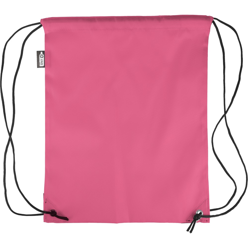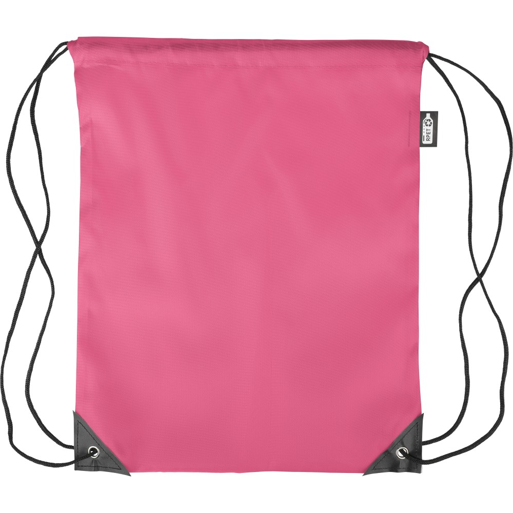 Tornazsák 210D poliészter anyagból, fekete PU sarokerősítéssel az elején, és belső varrással. Fekete nylon húzózsinórral, egy rekesszel. Űrtartalom: 5 liter, teherbíró képesség: 7 kg. rPET címkét tartalmaz.