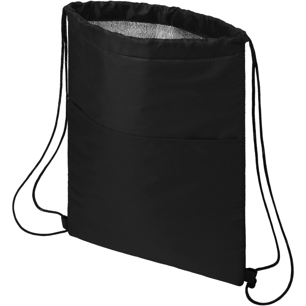 Hátizsák és hűtőtáska fekete húzózsinórral 12 doboz számára. Teherbírás 5 kg-ig. 210D poliészter.