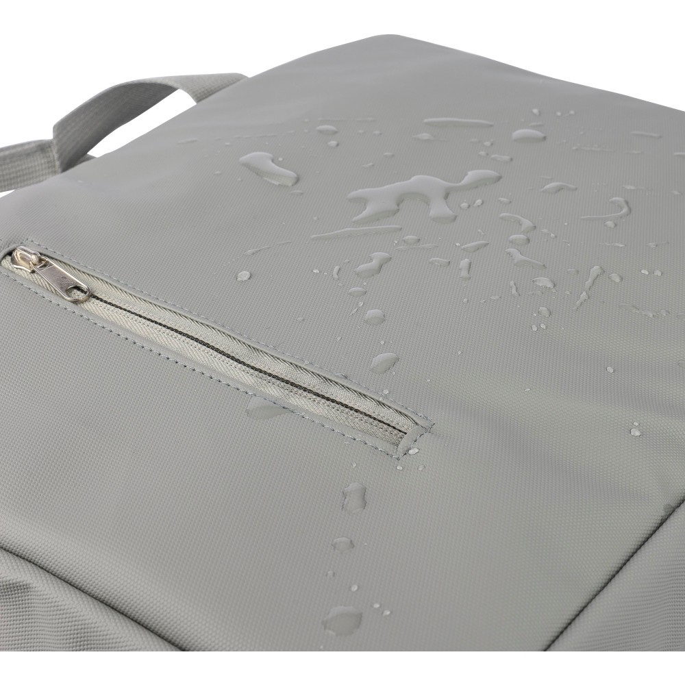 Laptoptáska 15"-es laptophoz PU anyagból, két cipzáras első zsebbel, egy nagy cipzáras rekesszel és tépőzáras laptop résszel, valamint több belső zsebbel. Állítható vállpántokkal és két fogantyúval rendelkezik. Vízlepergető. Anyaga: PU.