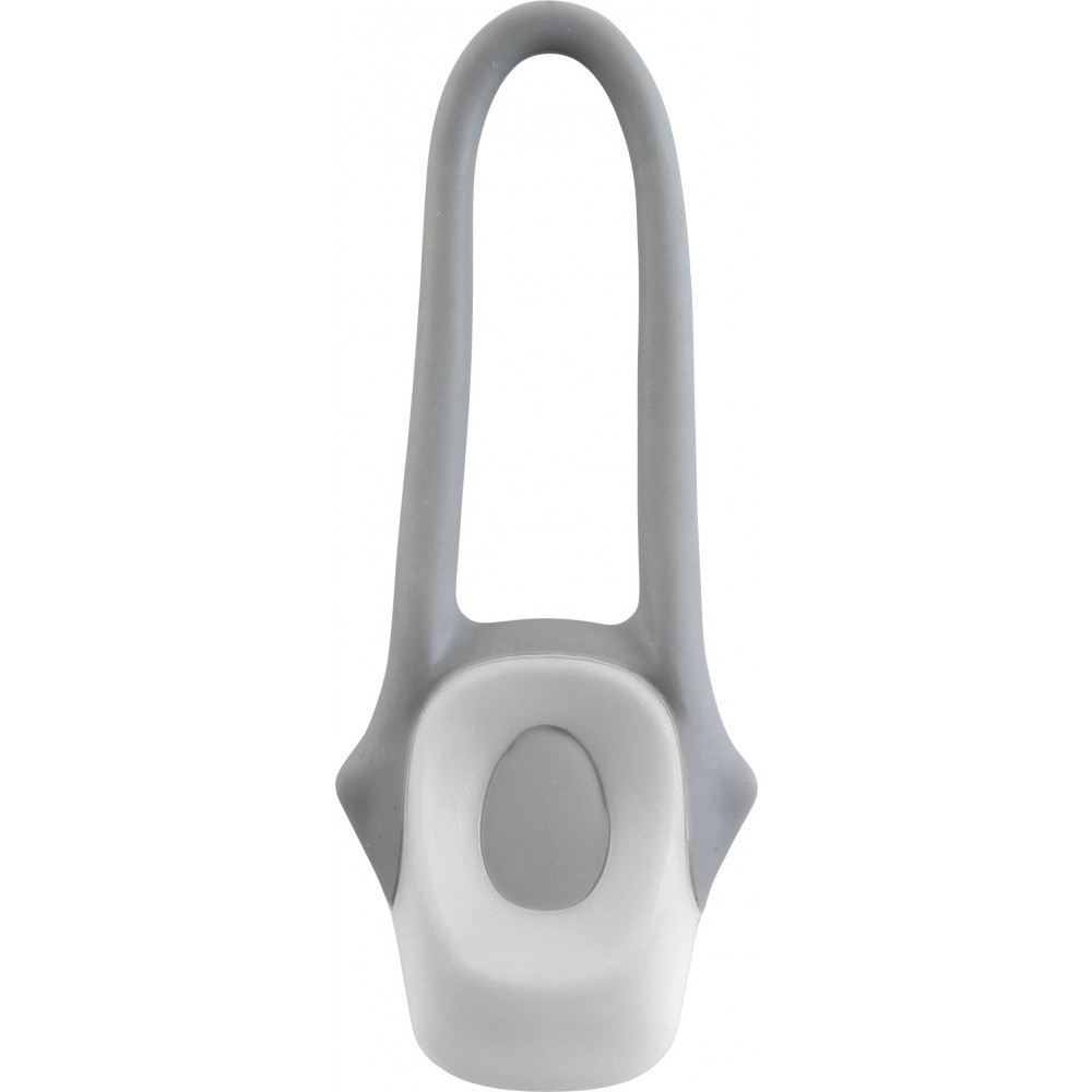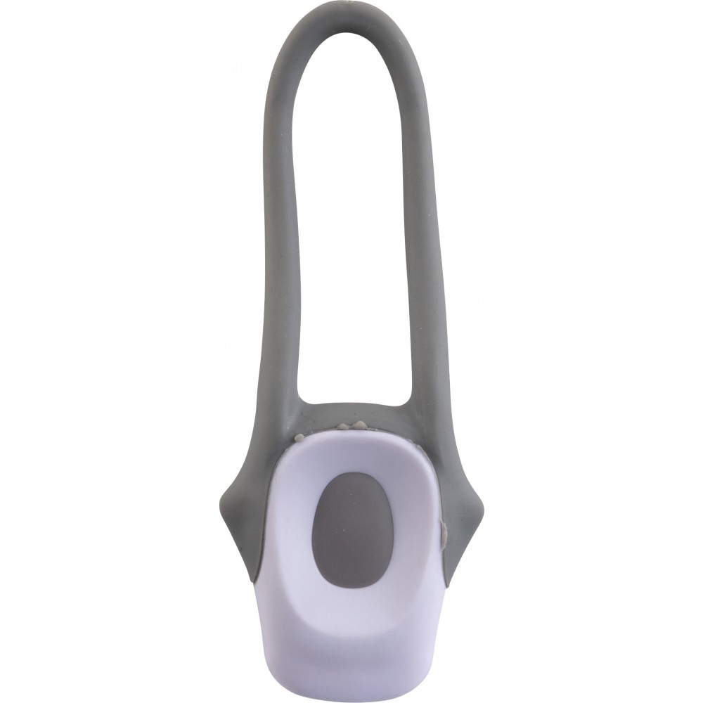 Műanyag kerékpáros lámpa két LED-del, szilikon rögzítőpánttal, kétféle villogó funkcióval és ki/bekapcsoló gombbal. A fehér színű lámpa első világításnak, a piros pedig hátsó világítás céljára alkalmas. Az elemet tartalmazza.