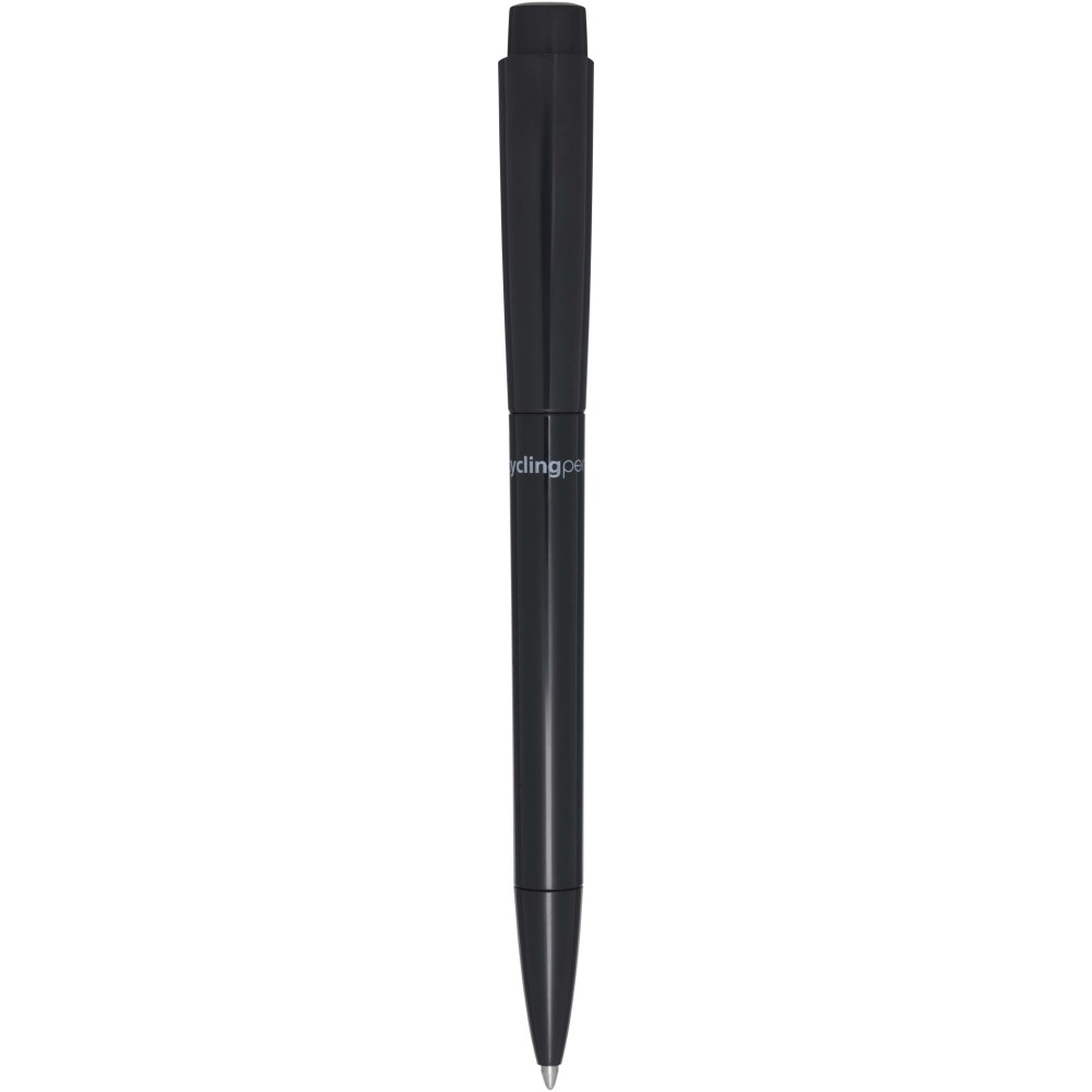 Golyóstoll, amelynek teste és klipsze újrahasznosított műanyagból, hegye pedig rozsdamentes acélból készült. Kék tollbetéttel. Íráshossz: 3000 méter. Hegyméret: 1,00 mm. Németországban készült.