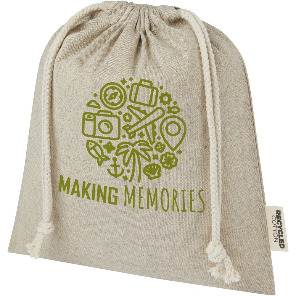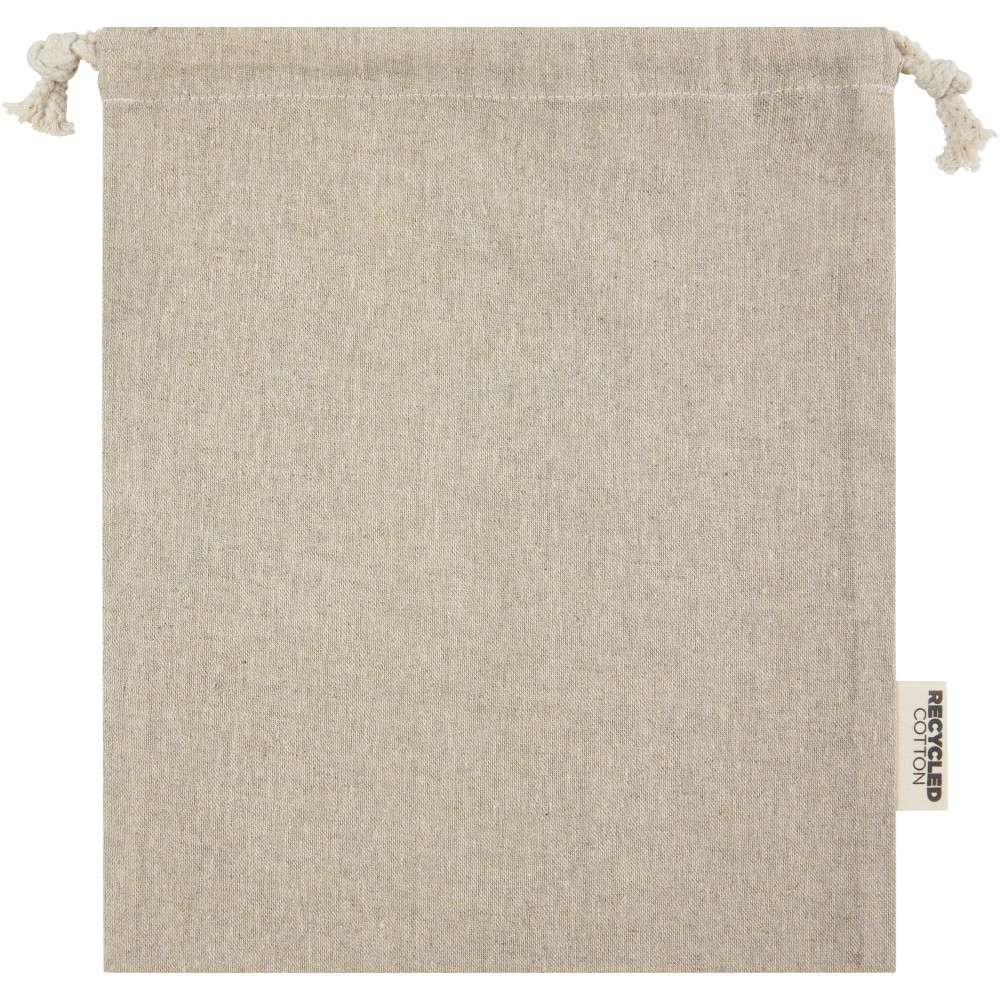 Ajándéktáska GRS tanúsítvánnyal rendelkező újrahasznosított pamutból, pamut húzózsinórral. Ideális ajándékok átadására, tárolására. Mérete: 25 x 30 cm.