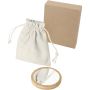 Kerek tükör bambuszból a természetes és elegáns megjelenésért. Pamut tasakban szállítjuk.