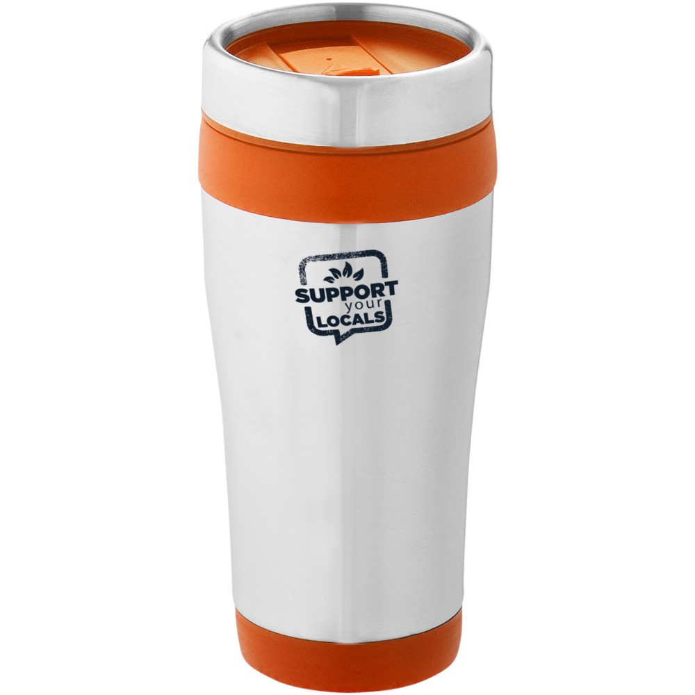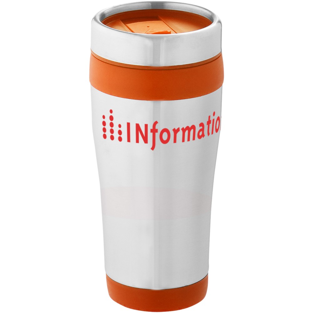 Duplafalú bögre rácsavarható tetővel és elcsúsztatható nyílással. A rozsdamentes acél és a műanyag kombinációja rendkívül erőssé, korrózióállóvá és könnyen tisztíthatóvá teszi a poharat. Nem szivárgásmentes. Szénsavas italokkal is használható. Mosogatógépben nem mosható és mikrohullámú sütőben történő melegítésre nem alkalmas. Űrtartalom: 470 ml.