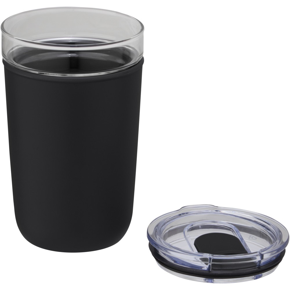 Újrahasznosított műanyag tokkal védett üvegpohár. A pohár 100%-ban tartós boroszilikát üvegből készült, amely megőrzi az ital frissességét, és nem tartalmaz semmilyen káros vegyszert. BPA-mentes, a német élelmiszerbiztonsági törvény (LFGB) szerint tesztelt és jóváhagyott. Ftaláttartalomra tesztelve és jóváhagyva a REACH előírásai szerint. A pohár a legtöbb kávéfőző alá illeszkedik. Nem szivárgásmentes. Szénsavas italokkal nem használható. Mosogatógépben mosható, de mikrohullámú sütőben történő melegítésre nem alkalmas. Űrtartalom: 420 ml. Újrahasznosított karton díszdobozban.