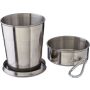Összecsukható pohár fém karabinerrel. Egyenként barna kartondobozba csomagolva. Anyaga: rozsdamentes acél. Űrtartalom: 220 ml.