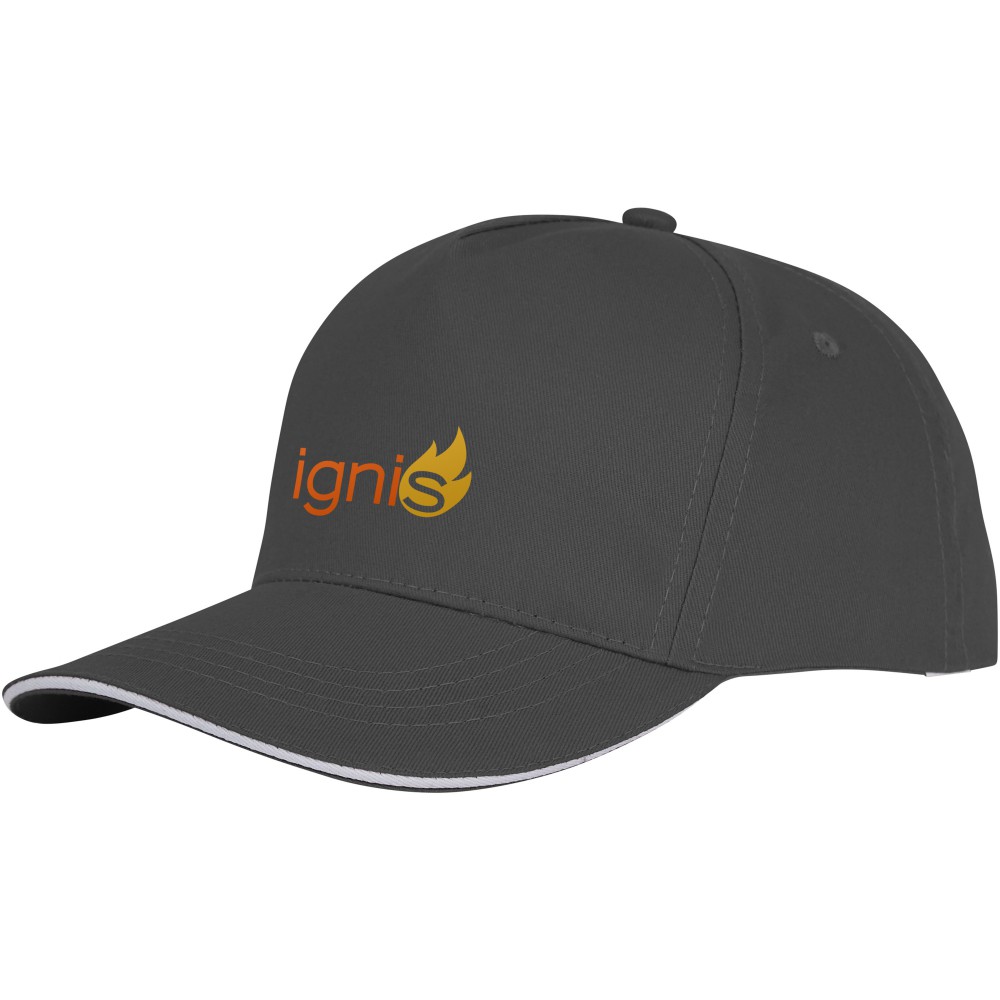 Ceto 5 paneles szendvics baseballsapka formázott szendvics simléderrel, hímzett szellőzőnyílásokkal és tépőzárral. 100% twill pamut. 175 g/m2.