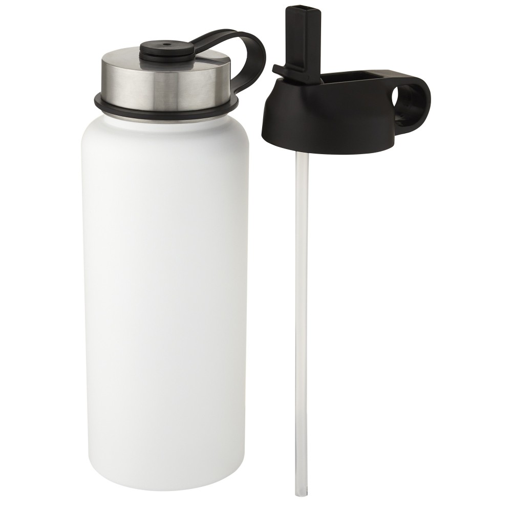 Kettő az egyben duplafalú, rozsdamentes acél sportpalack réz vákuumszigeteléssel, 2 fedéllel: egy szívószálas fedél és egy felcsavarható fedél hurokkal. A szigetelt 18/8-as rozsdamentes acél konstrukció megakadályozza a páralecsapódást a palack külső oldalán, a divatos matt bevonat pedig extra tartóssá teszi. Szélesen nyíló száj a könnyű feltöltéshez, kiöntéshez és tisztításhoz. BPA-mentes, a német élelmiszerbiztonsági törvény (LFGB) szerint tesztelt és jóváhagyott. Ftaláttartalomra tesztelve és jóváhagyva a REACH előírásai szerint. Jégkockákhoz tökéletes. Szivárgásmentes. Szénsavas italokkal nem használható. Mosogatógépben nem mosható és mikrohullámú sütőben történő melegítésre nem alkalmas. Nagy űrtartalmú palack: 1L. Újrahasznosított karton díszdobozban.