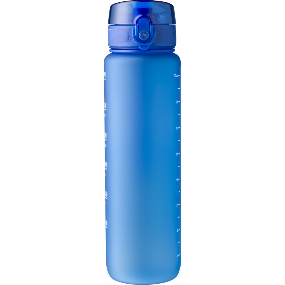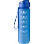Műanyag motivációs palack szivárgásmentes kupakkal, csuklópánttal, matt bevonattal. Oldalán beosztással. Űrtartalom: 1 liter.