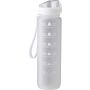 Műanyag motivációs palack szivárgásmentes kupakkal, csuklópánttal, matt bevonattal. Oldalán beosztással. Űrtartalom: 1 liter.