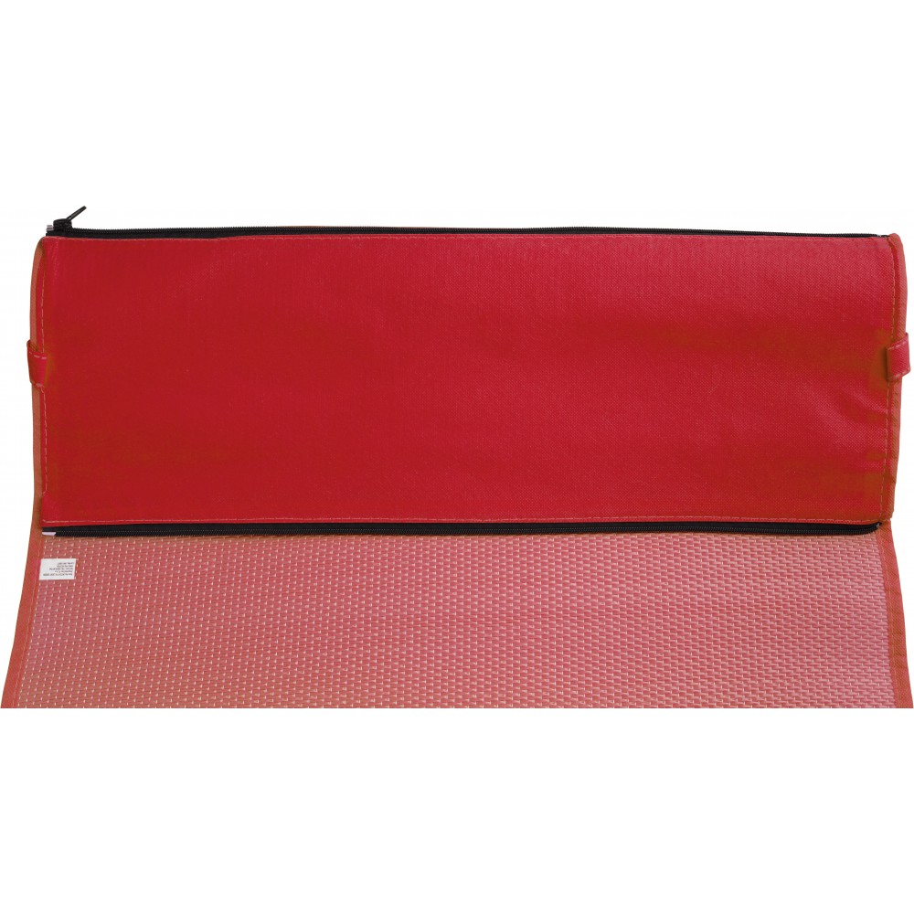 Összehajtható napozó színben illeszkedő hordozópánttal. Cipzárral összezárt mérete: 2,5 x 71 cm. PP nemszőtt anyag.