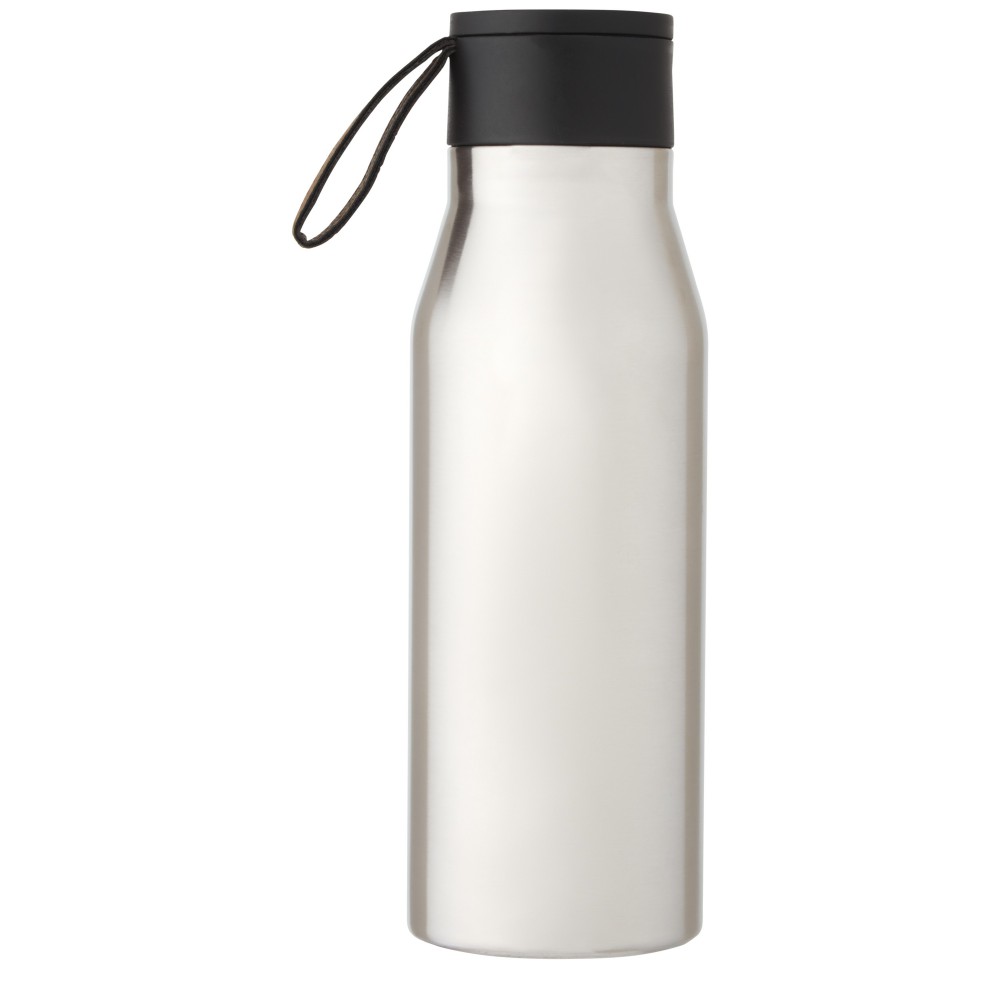 Réz vákuumszigetelt rozsdamentes acél palack klasszikus és elegáns dizájnnal. PU bőr szíjjal és részlettel a fedélen. Ez ideálissá teszi a lézergravírozáshoz, amely a logót ezüst színben emeli ki, gyönyörű vizuális hatást hozva létre. A 18/8-as rozsdamentes acél duplafalú réz vákuumszigetelésével az italok több órán keresztül melegek vagy hidegek maradnak. A német élelmiszerbiztonsági jogszabályok (LFGB) szerint tesztelték és jóváhagyták, és a REACH előírásai szerint tesztelték a ftaláttartalmat. Szivárgásmentes. Szénsavas italokkal nem használható. Mosogatógépben nem mosható és mikrohullámú sütőben történő melegítésre nem alkalmas. Űrtartalom: 500 ml. Újrahasznosított karton díszdobozban.