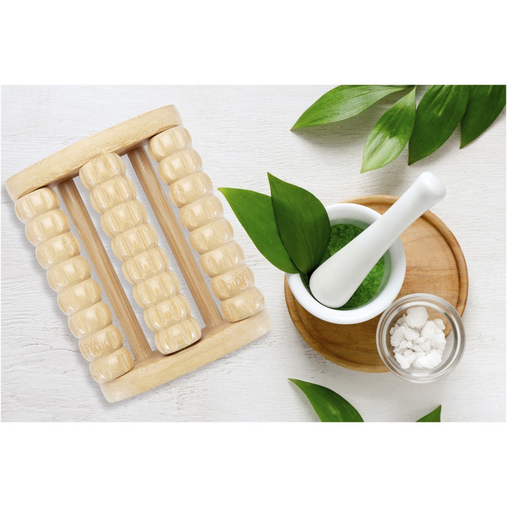 Bambuszból készült talpmasszázs görgő 3 soros masszírozóval. Egyszerűen helyezze a masszírozót a padlóra, majd mozgassa a lábát a kellemes pihentető érzés érdekében. A felhasznált bambusz forrása és előállítása a fenntartható szabványok szerint történik.