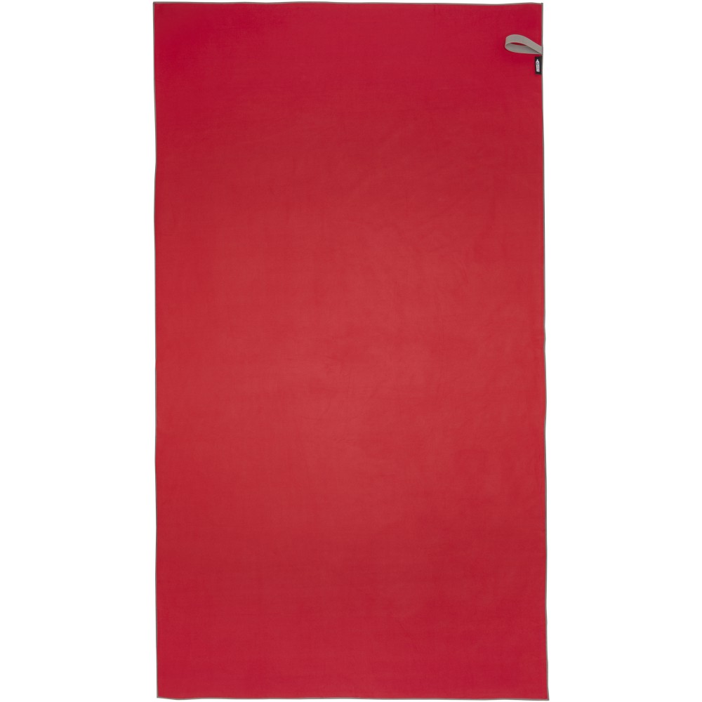 A Pieter sporttörülköző nagyon jó nedvszívó, könnyű, gyorsan szárad, az anyaga pedig tartós és rendkívül puha. Ha a törölközőt összehajtjuk és gumiszalaggal rögzítjük, kis méretűre csomagolható, így alkalmas arra, hogy magunkkal vigyük az edzőterembe, uszodába, vagy ha hátizsákos túrára, esetleg kempingezésre megyünk. A törülköző 100 x 180 cm méretű, 90% GRS újrahasznosított poliészterből és 10% nejlonból készült, és 40 °C-on mosható mosógépben. Újrahasznosított PET műanyagból készült tároló tasakkal (25 x 8,5 cm) szállítjuk.