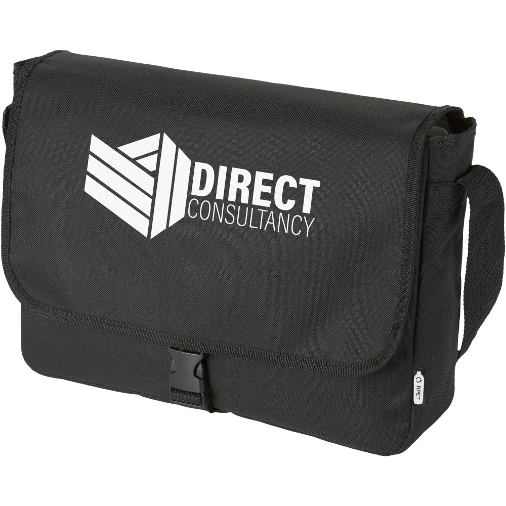 Újrahasznosított PET műanyagból készült válltáska állítható vállpánttal. Egy fő rekesszel, amely fedéllel és csattal záródik.