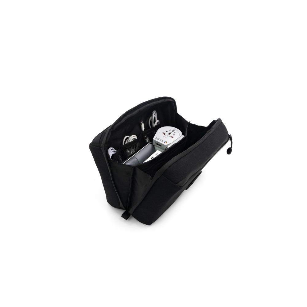 A Zen táska egy többfunkciós, környezetbarát, újrahasznosított PET-palackokból készült táska, amely ideális sokoldalú céges ajándéknak. Egyesíti a piperetáska, a technikai rendszerező és a crossbody táska funkcionalitását, különféle zsebekkel, amelyekben személyes ápolási cikkeket vagy technikai eszközöket tárolhat. Tartós félkemény héja, időjárásálló anyagai, vízálló cipzárai és puha tapintású, állítható pántja rugalmassá, mégis kényelmessé teszik a mindennapi használatra. Elegáns kialakításának és többféle hordozási lehetőségének köszönhetően a Zen Bag stílusos és tartós kialakítású.
