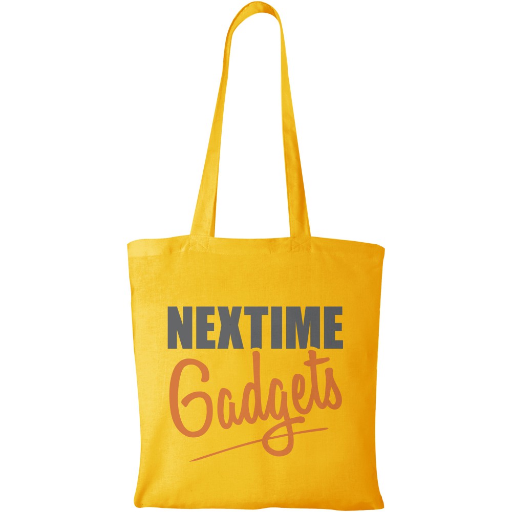 A Carolina táska könnyű és pénztárcabarát, így kiválóan alkalmas reklámhordozó rendezvényeken, konferenciákon vagy kiállításokon. A nagy fő rekesz elegendő helyet biztosít a könnyű tárgyak tárolására, a 30 cm-es vállpántok pedig megkönnyítik a táska szállítását. Fülek magassága 30 cm. 100 g/m2 pamut.